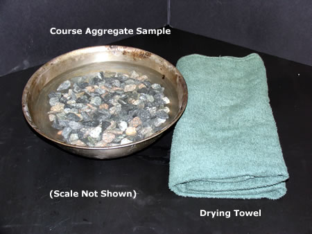 The coarse aggregate specific gravity test (Figure 71) is used to calculate the specific gravity of a coarse aggregate sample by determining the ratio of the weight of a given volume of aggregate to the weight of an equal volume of water. It is similar in nature to the fine aggregate specific gravity test.
