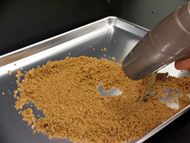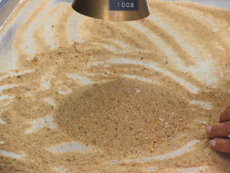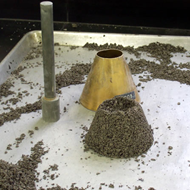 If the aggregate slumps on the first Cone Test, it is assumed that the aggregate has already dried beyond the SSD condition (Figure 9). The aggregate can be restored by thoroughly mixing in a small amount of water and allowing the aggregate to stand in a covered container for 30 minutes. The drying process can then be resumed (AASHTO, 2000c[1]).