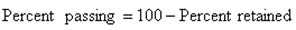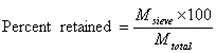 Percent retained or percent passing each sieve size by mass and material finer than the 0.075 (No. 200) sieve.