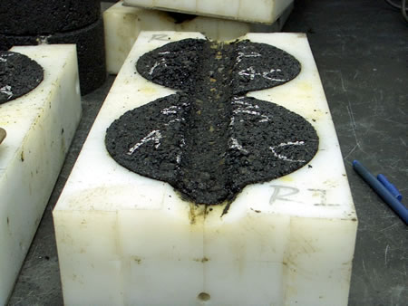 The HWTD has been found to have excellent correlation with field performance (especially in moisture damage evaluation) (Aschenbrener, 1995[4]; Izzo and Tahmoressi, 1999[5]; Williams and Prowell, 1999[6]) however, it can fail to differentiate between some mixtures (Zhou et al., 2003[7]). The FHWA has a good concise description of the HWTD at: