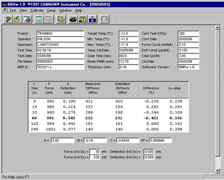 Originally, the key reporting values were creep stiffness at 60 seconds and the slope of the master stiffness curve at 60 seconds (commonly called the “m-value”).