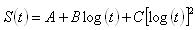 In order to determine the stress relaxation properties of an asphalt binder, creep stiffness calculations are made at 8, 15, 30, 60, 120 and 240 seconds of loading. These times were chosen because they are about equally spaced on a logarithmic time scale (Figure 5). For each time, the asphalt binder creep stiffness is calculated and plotted. A curve, called the master stiffness curve, is then fit to these points and is of the form:
