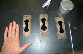The ductility test (Figure 162) measures asphalt binder ductility by stretching a standard-sized briquette of asphalt binder (Figure 163) to its breaking point. The stretched distance in centimeters at breaking is then reported as ductility. Like the penetration test, this test has limited use since it is empirical and conducted at only one temperature (25° C (77° F)).